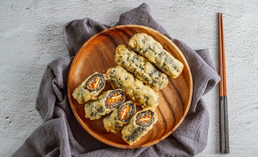 Киммари – это небольшие рулетики с начинкой из стеклянной лапши и овощей, которые обжаривают в кляре и подают с различными дипами. Это блюдо постное, не слишком калорийное, и при этом замечательное на вкус. Остро-сладкая липкая начинка и хрустящие водоросли создают идеальную гармонию!
