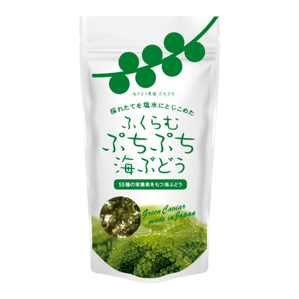 Свежесобранные водоросли Каулерпа (другое название: морской виноград), вымоченные в соленой воде и содержат 55 видов питательных веществ.