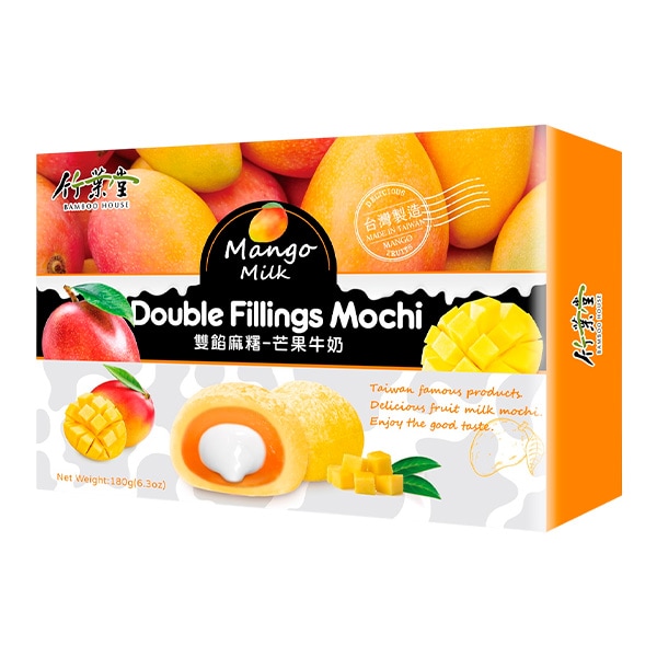 Моти со вкусом молочного манго Bamboo House — это традиционное японское лакомство, приготовленное из клейкого риса и сладкой фруктовой начинки. Этот десерт обладает нежным вкусом манго и молочного пудинга, который придётся по вкусу любителям экзотических сладостей.