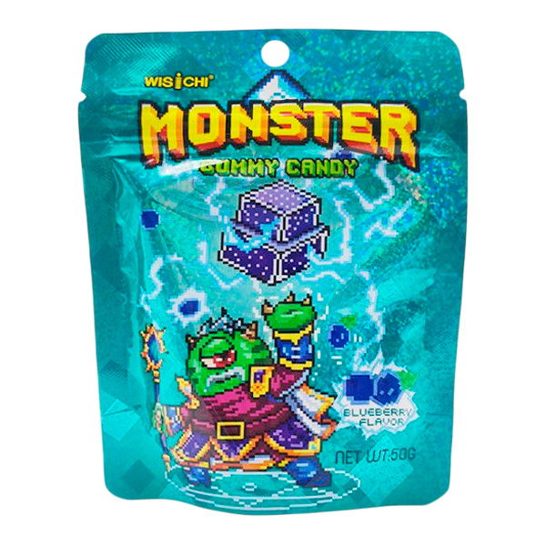 Жевательные конфеты Monster со вкусом черники Wisichi, пачка 50 г